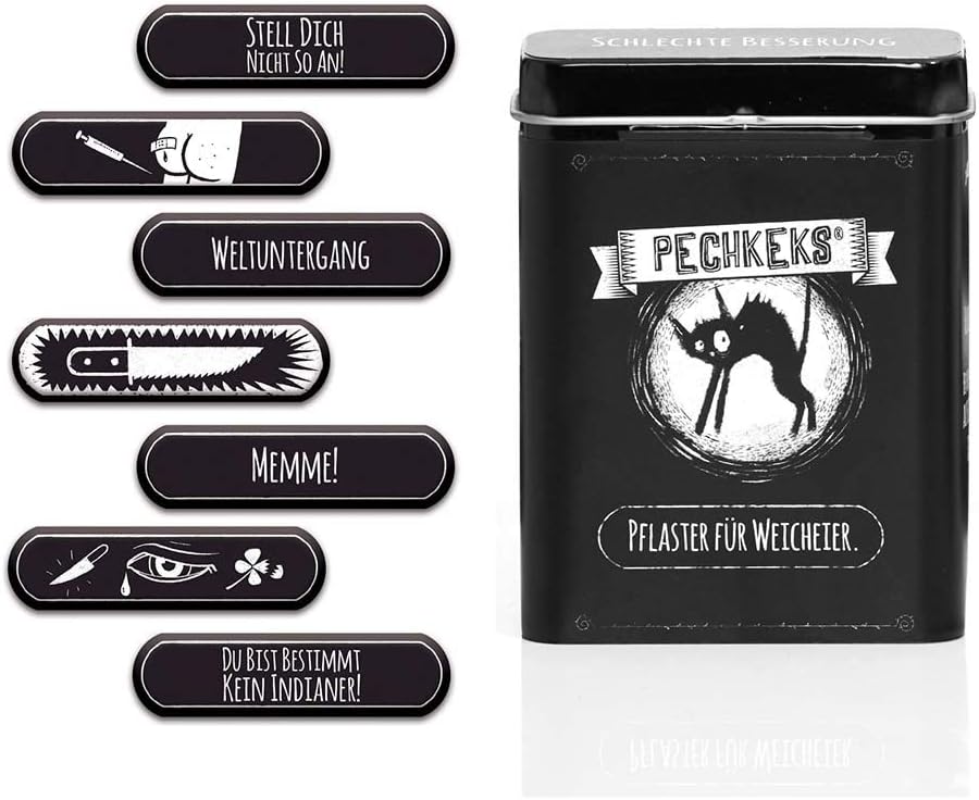 Diese Pflaster-Box mit der Aufschrift „FÜR WEICHEIER“ ist medizinisch vollwertig und gleichzeitig das ehrlichste Kommentar zum dramatischen Umgang mit Papierschnitten und ähnlichen Bürounfällen. Klein, günstig, unvergesslich.